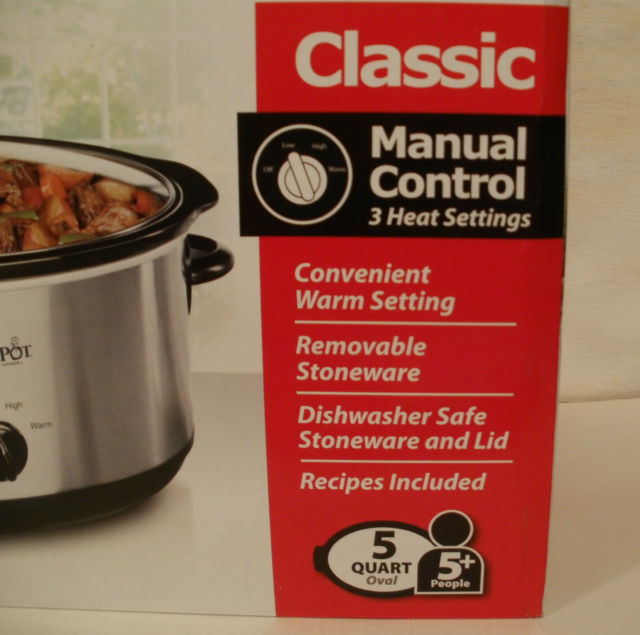 Crock Pot 5 Quarts Oval Silver Stainless Steel Manual Slow Cooker Eddie